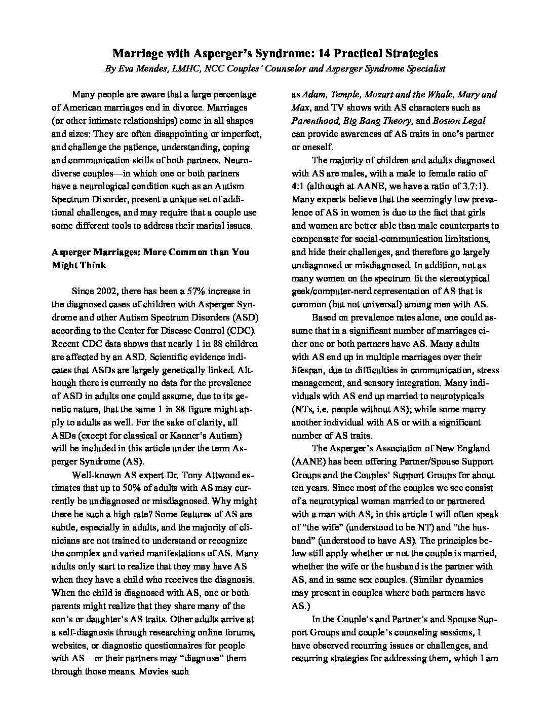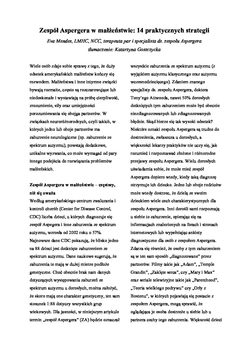 Zespół Aspergera w małżeństwie: 14 praktycznych strategii (Polish translation)