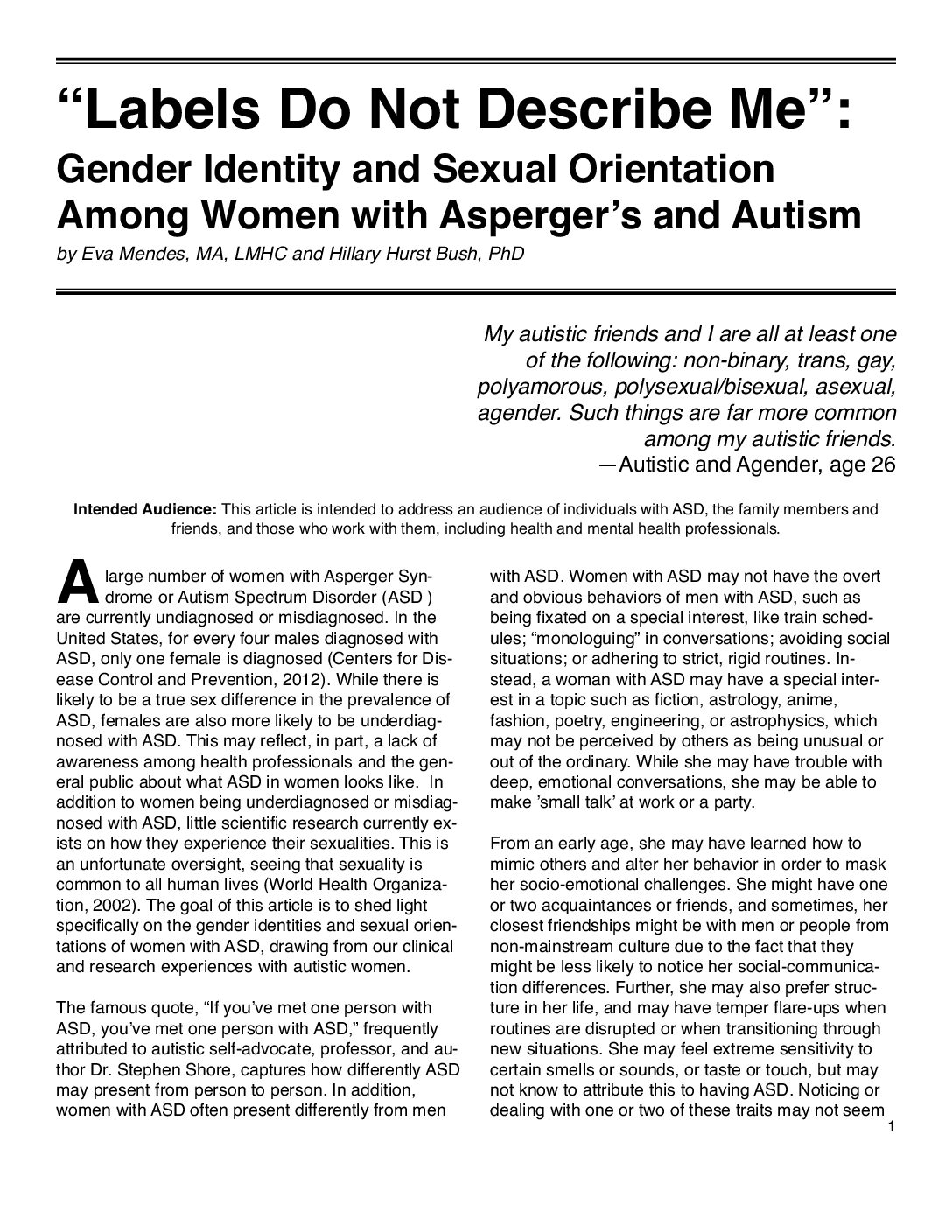 Gender Identity and Sexual Orientation Among Women with Asperger’s and Autism